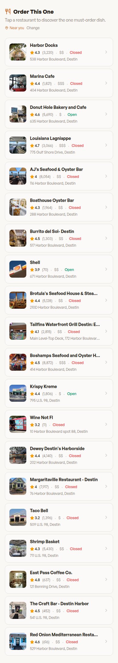 Find the one must-order dish at any nearby restaurant, powered by AI and real reviews.